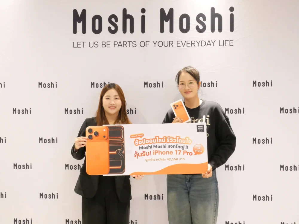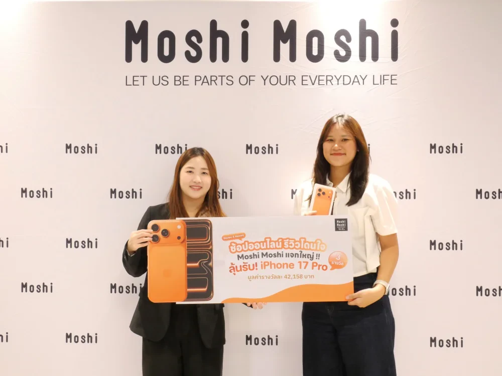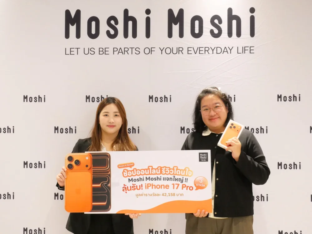 Moshi Moshi จัดกิจกรรมสุดพิเศษ “ช้อปออนไลน์ รีวิวโดนใจ Moshi Moshi แจกใหญ่! ลุ้นรับ iPhone17Pro” ได้มอบ iPhone 17Pro สี Cosmic Orange จำนวน 3 รางวัล ให้แก่ผู้โชคดีที่ร่วมสนุกกับแคมเปญดังกล่าว